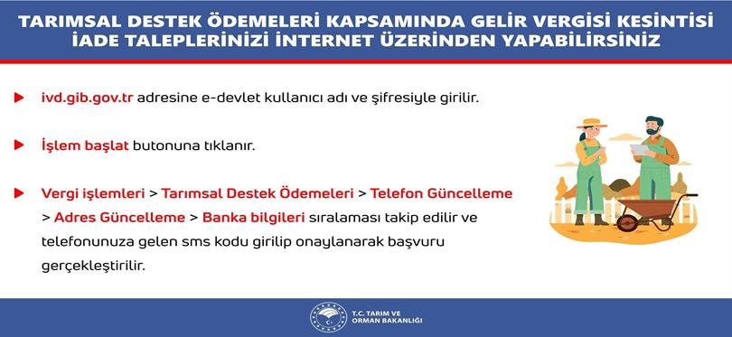 Ayrıca 2016 yılına ilişkin olarak, tarımsal destekleme ödemelerinden kesilen gelir vergisinin iadesi için başvuru sahiplerinin en geç 31/12/2021 tarihine kadar başvuruda bulunması gerekmektedir.