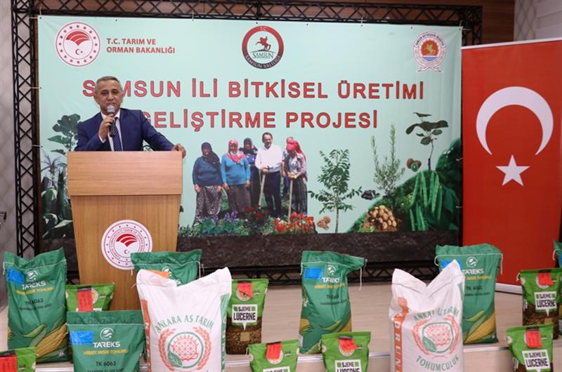 İl Müdürümüz İbrahim SAĞLAM törende yaptığı konuşmada: "İlimizde 396.087 adet büyükbaş, 275.792 adet küçükbaş ve 4.751 adet tek tırnaklı hayvan mevcudumuzun 1.272.068 ton kaba yem ihtiyacı bulunmaktadır. Samsun İlimizin kaba yem ihtiyacını 662.689 dekar yem bitkileri ekiliş alanları, 160.892 dekar mera alanlarından, 1.950.000 dekar otlatmaya açık orman ve fındık bahçelerinden ve 1.110.711 dekar arpa, buğday, dane fiğ üretiminden ve arta kalan kısmı da sap samanlardan elde edilen toplam 967.089 ton kaba yemden karşılamaktayız.