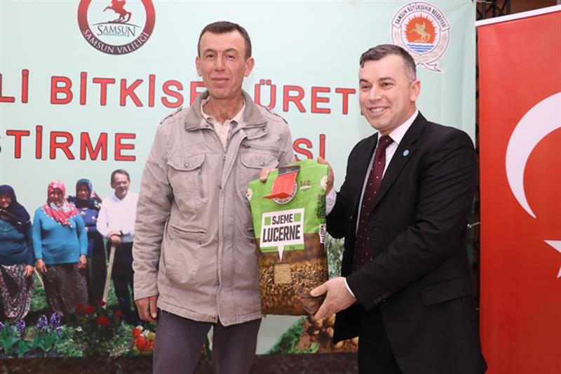 Samsun Büyükşehir Belediye Başkanlığımız ile 2022 yılında uygulamaya koyduğumuz Yem Bitkileri Ekiliş Alanlarını Artırma Projesi ile üreticilerimize % 60 hibeli olarak 21.000 dekar alanda üretilmek üzere 42.000 kg silajlık mısır, 2.800 dekar alanda üretilmek üzere 7.000 kg yonca, 500 dekar alanda üretilmek üzere 5.000 kg korunga, 6.900 dekar alanda üretilmek üzere 69.000 kg yem bezelyesi ve 2.500 dekar alanda üretilmek üzere 10.000 kg hibe İtalyan çimi tohumluğu üreticilerimize hibe edilecektir. Böylece toplamda 133.000 kg hibe edilecek yem bitkisi tohumluğu ile 33.700 dekar yem bitkisi ekilişi sağlanmış olacaktır.