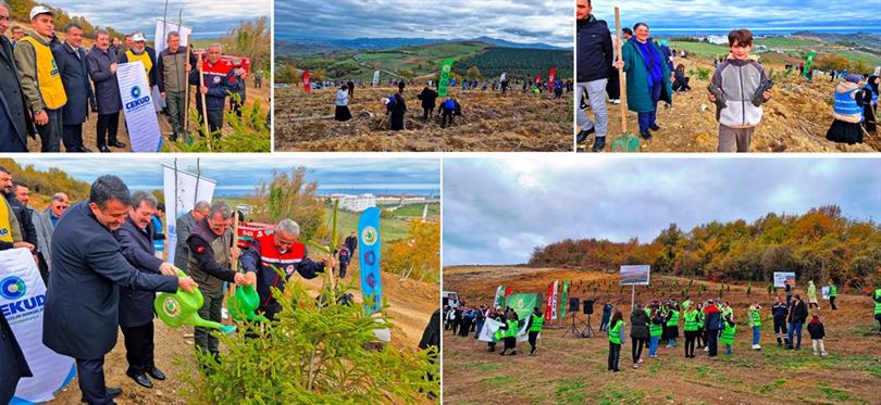 Programda protokol konuşmalarının ardından, önceden belirlenmiş ve parsellenerek numaralandırılmış alanlara fidanlar dikilerek ilk can suyu ile buluşturuldu.