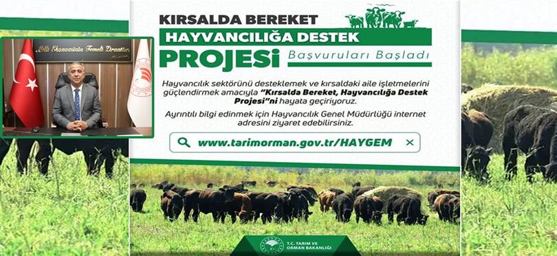 İl Müdürümüz İbrahim Sağlam, başvuruları başlayan “Kırsalda Bereket, Hayvancılığa Destek Projesi" hakkında bilgi verdi: " Tarım ve Orman Bakanlığımız, hayvancılık sektörünü desteklemek ve kırsaldaki aile işletmelerini güçlendirmek amacıyla “Kırsalda Bereket, Hayvancılığa Destek Projesi" ni hayata geçiriyor. Proje kapsamında, Hayvancılık Genel Müdürlüğü (HAYGEM) koordinasyonunda Tarım İşletmeleri Genel Müdürlüğü'ne (TİGEM) ait etçi ırk gebe damızlık büyükbaş hayvanlar üreticilere verilecektir.