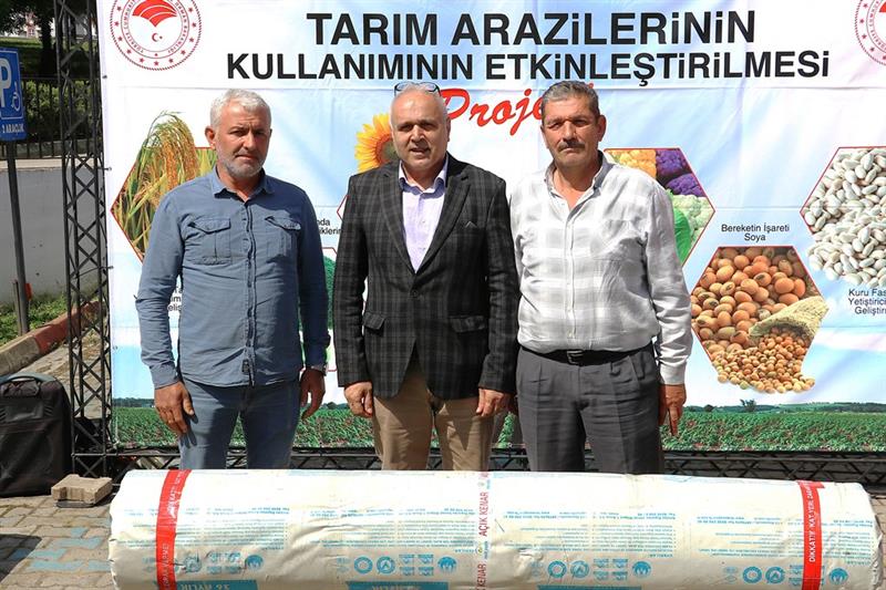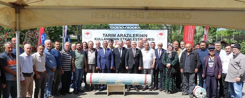 Çarşamba İlçe Tarım ve Orman Müdürlüğü yerleşkesinde 'Alternatif Üretim Yöntemlerinin Geliştirilmesi Projesi' kapsamında üreticilere sera naylonu teslim töreni düzenlendi.