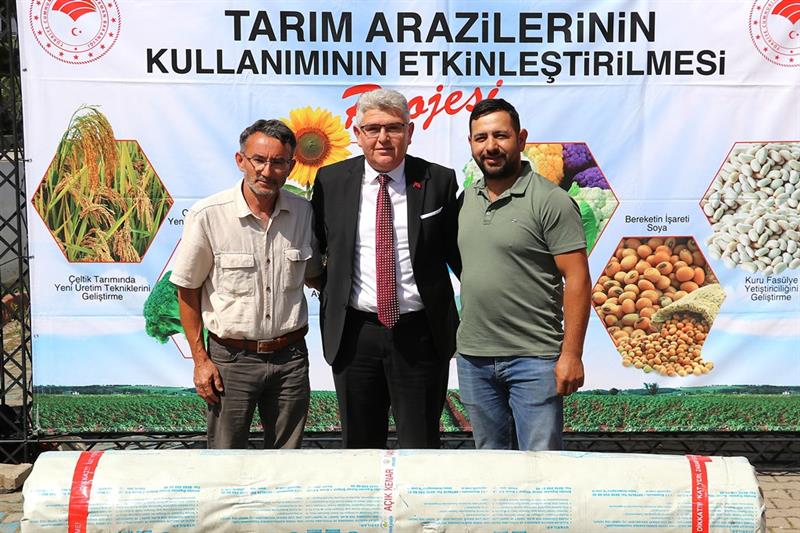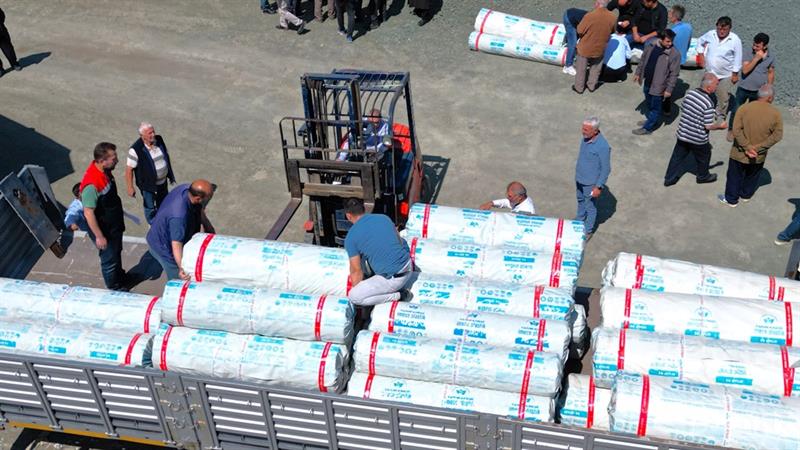 Tören çiftçilere sera naylonlarının teslim edilmesi ile sona erdi.