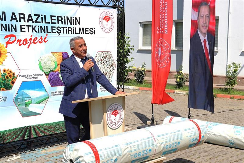 Törende bir konuşma yapan İl Müdürümüz İbrahim Sağlam, şunları söyledi: "Samsun örtüsünün toplam bütçesi 5.376.000,00 TL olup Bakanlığımızın katkısı 2.500.000,00 TL'dir. ilimizin 2024 yılı örtü altı varlığı 2.559 dekar olup; 245 da alçak tünel, 2.125 da yüksek tünel ve 189 da plastik seradan oluşmaktadır.