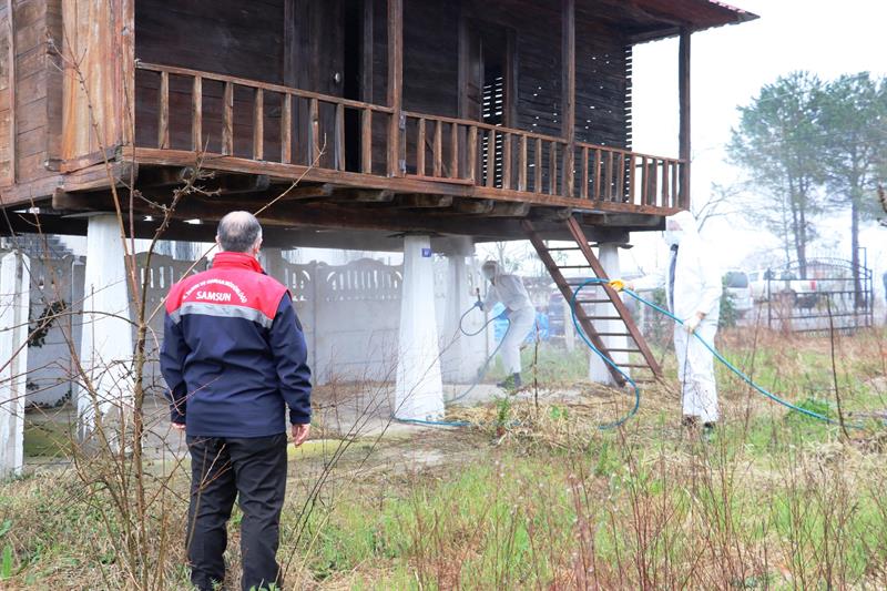 Havaların ısınmaya başlamasıyla ilçelerimizde yürütülen çalışmalarda; zararlının kışı geçirdiği ev, ahır ve depo gibi kapalı alanların dış yüzeyleri ile çatıları ilaçlanarak popülasyonun en aza indirilmesi hedefleniyor.