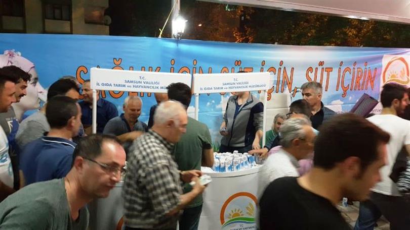 Samsun İl Gıda, Tarım ve Hayvancılık Müdürlüğümüz tarafından, bu kez de Kadir Gecesi dolayısıyla vatandaşlara Gürbüz Cami önünde kurulan stantlarda süt dağıtıldı.