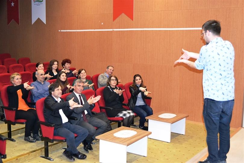 İl Müdürümüz Sayın Nail KIRMACI tarafından programlanan ve kendisinin olurlarıyla bir ay kadar sürmesi planlanan işaret dili eğitimi personelimizin yoğun ilgi ve katılımıyla tamamlanmıştır.