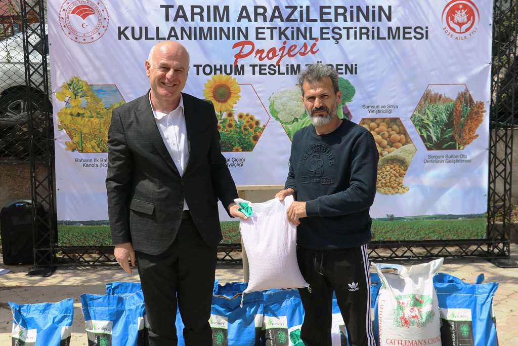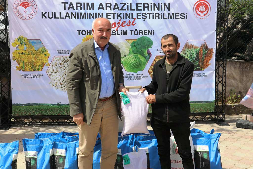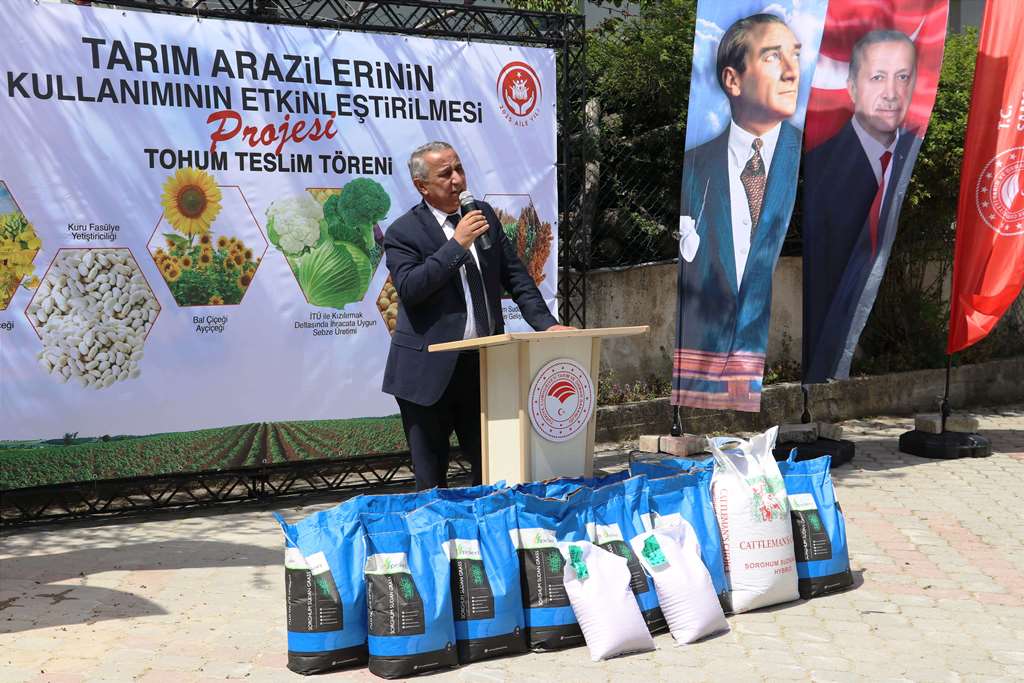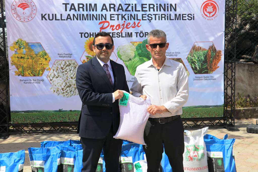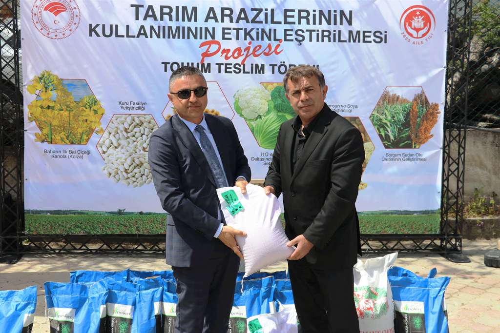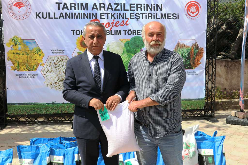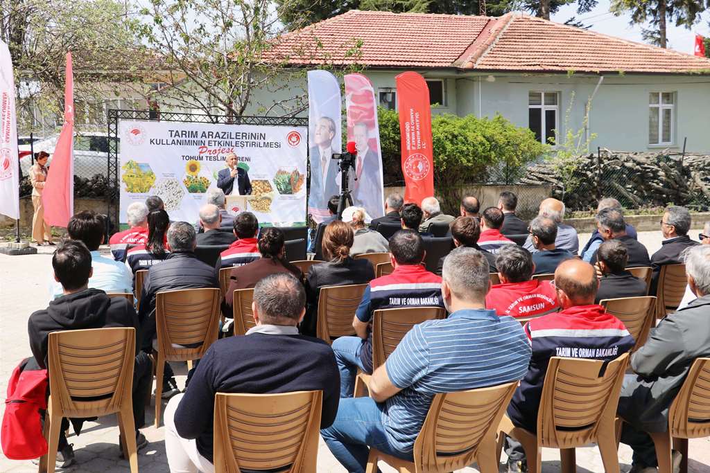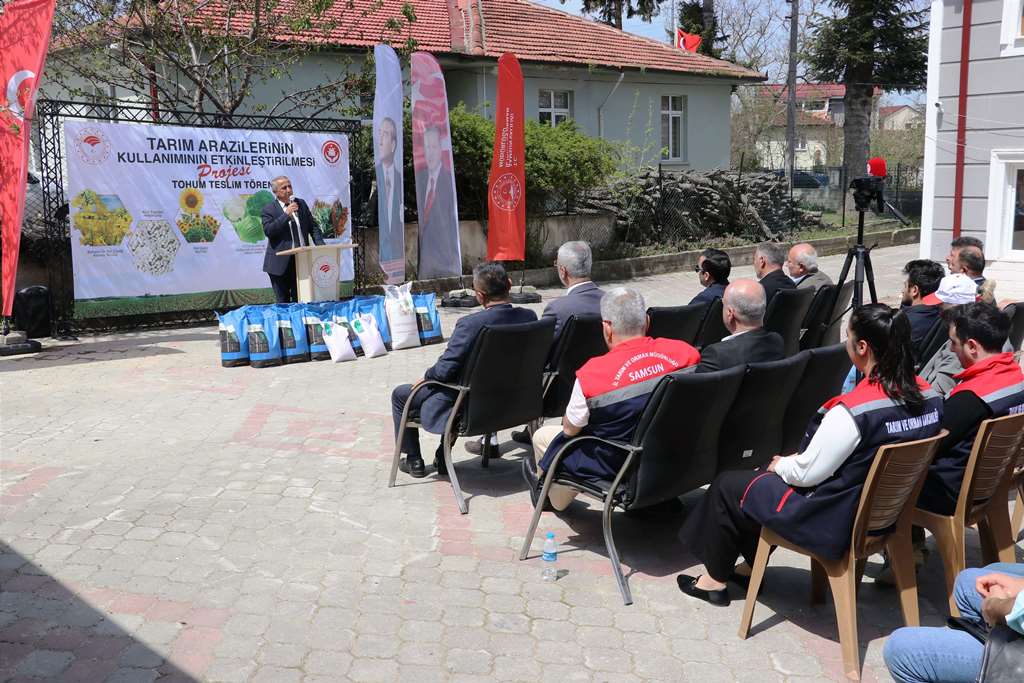 19 Mayıs ve Ladik İlçelerimizde ‘Sorgum Sudan Otu Melezi Üretiminin Yaygınlaştırılması Projesi’ Kapsamında Tohum Teslim Töreni Düzenlendi